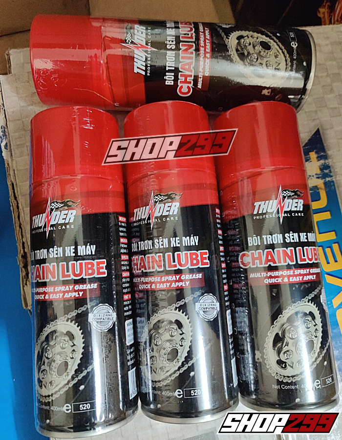 Chai xịt dưỡng sên THUNDER CHAIN LUBE được sản xuất đặc biệt với những tiêu chuẩn tân tiến nhất dành cho các dòng xe như: Kawasaki Z1000, Yamaha Exciter 150, Exciter 135, Honda Winner 150, Winner X, Fz150i, Yamaha R15, KTM Duke, Raider 150, Axelo, Honda Rebel,...
