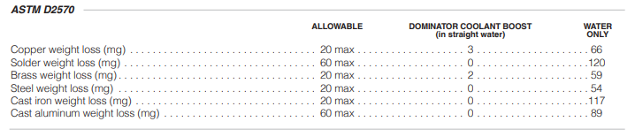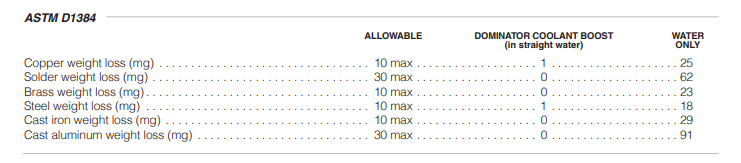 ASTM D4340 DOMINATOR COOLANT BOOST (in water) WATER ONLY