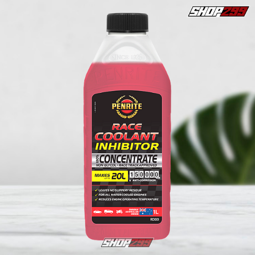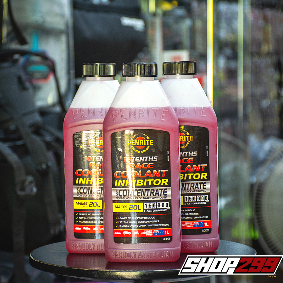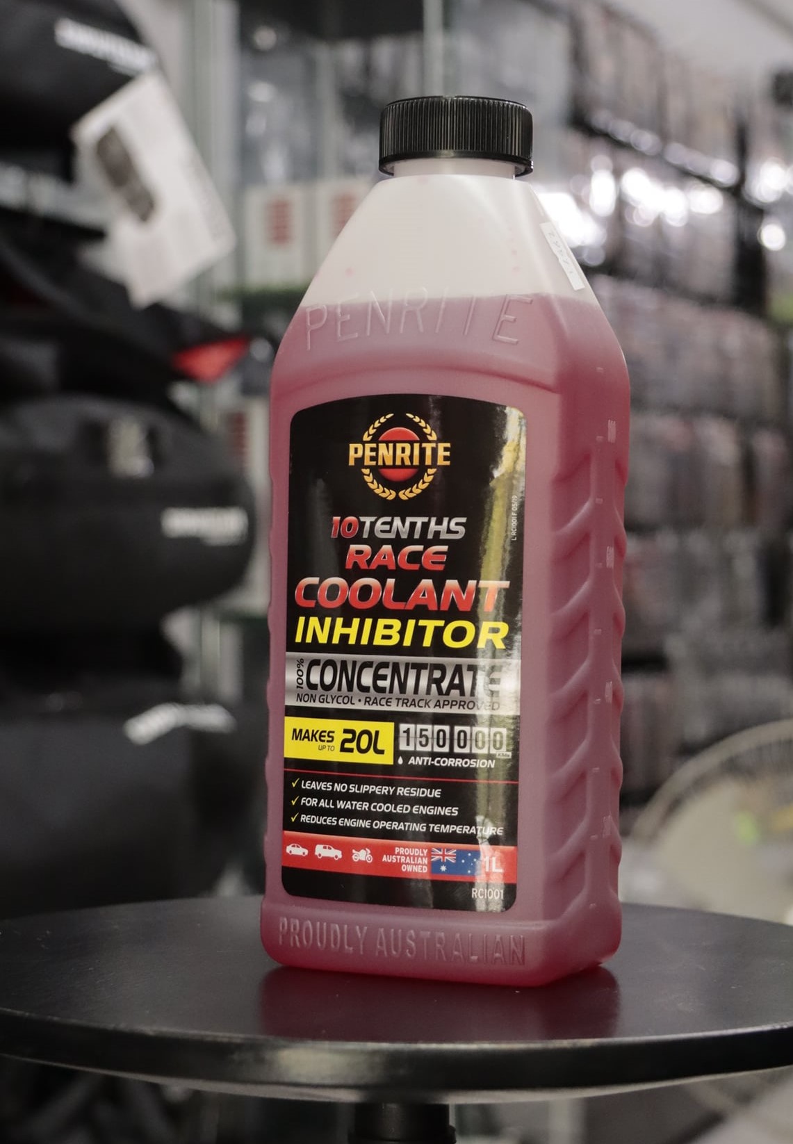 10 Tenths Race Coolant Inhibitor Concentrate Inhibitor is formulated for all water cooled engines, especially where high engine operating temperatures are experienced. It provides superior heat transfer abilities to lower engine running temperatures compared to glycol based engine coolants.
