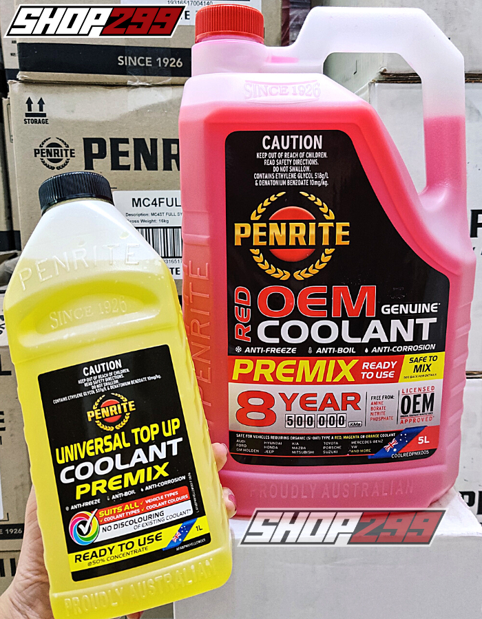 Penrite Universal Coolant Top Up is suitable for the cooling systems of all types of passenger vehicles, 4WD's, light & heavy commercial vehicles, stationary engines and motorcycles. It can be used to top up both Organic Acid Technology (OAT) & Hybrid Type A anti-freeze/anti boil coolants as well as Type B inhibitor only solutions. It is safe to use wherever anti-freeze / anti-boil / anti-corrosion properties are required and with all fuel types such as petrol, LPG, dual fuel, light & heavy duty diesel.