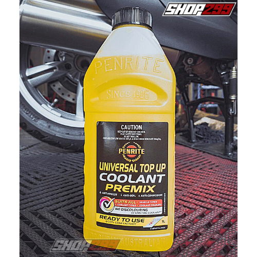 Penrite Universal Coolant Top Up is yellow and will not discolour existing coolant if not mixed at greater than 10% of system capacity. There is no limitation on the amount of Universal Coolant Top Up used in the cooling system and it can be mixed with all coolant types regardless of colour. It is pre-diluted at a 50% concentration with demineralised water making the product ready to use right out of the bottle.