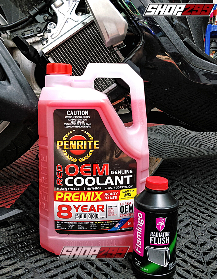 + Bước 5: Cho nước làm mát mới vào theo tiêu chuẩn của nhà sản xuất xe, ví dụ như Penrite Red Coolant Premix hoặc Ipone Radiator Liquid,...