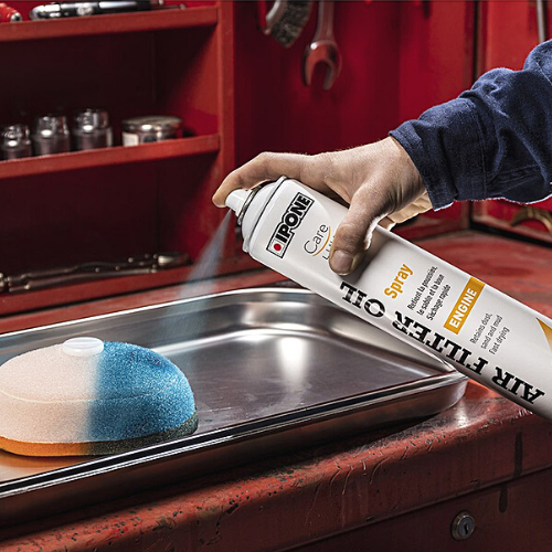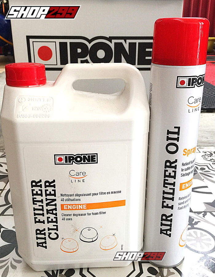 2) Xịt sản phẩm vào bộ mút lọc gió đã được vệ sinh sạch. (Có thể vệ sinh lọc gió với Ipone Air Filter Cleaner)