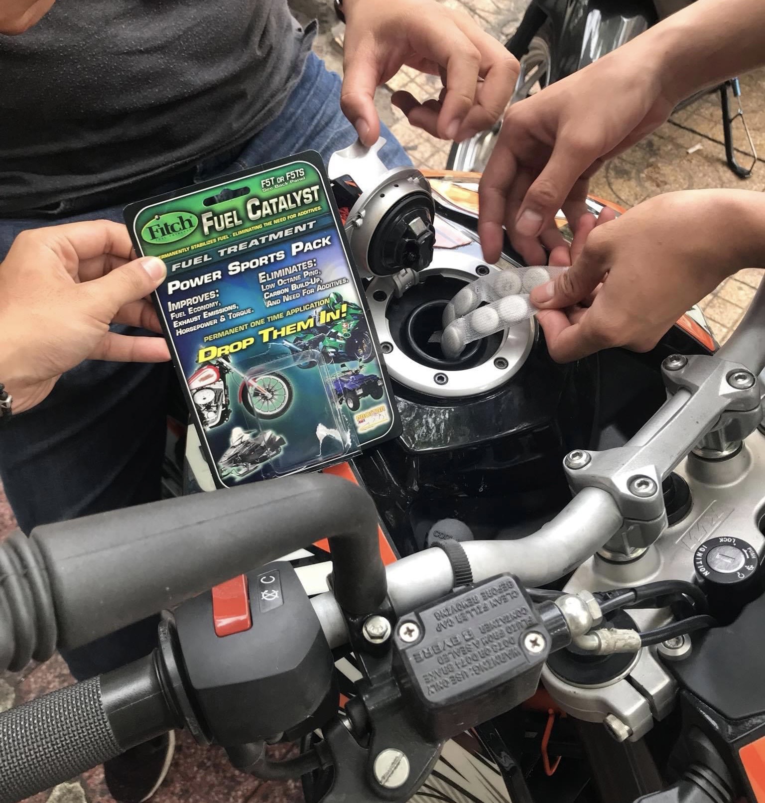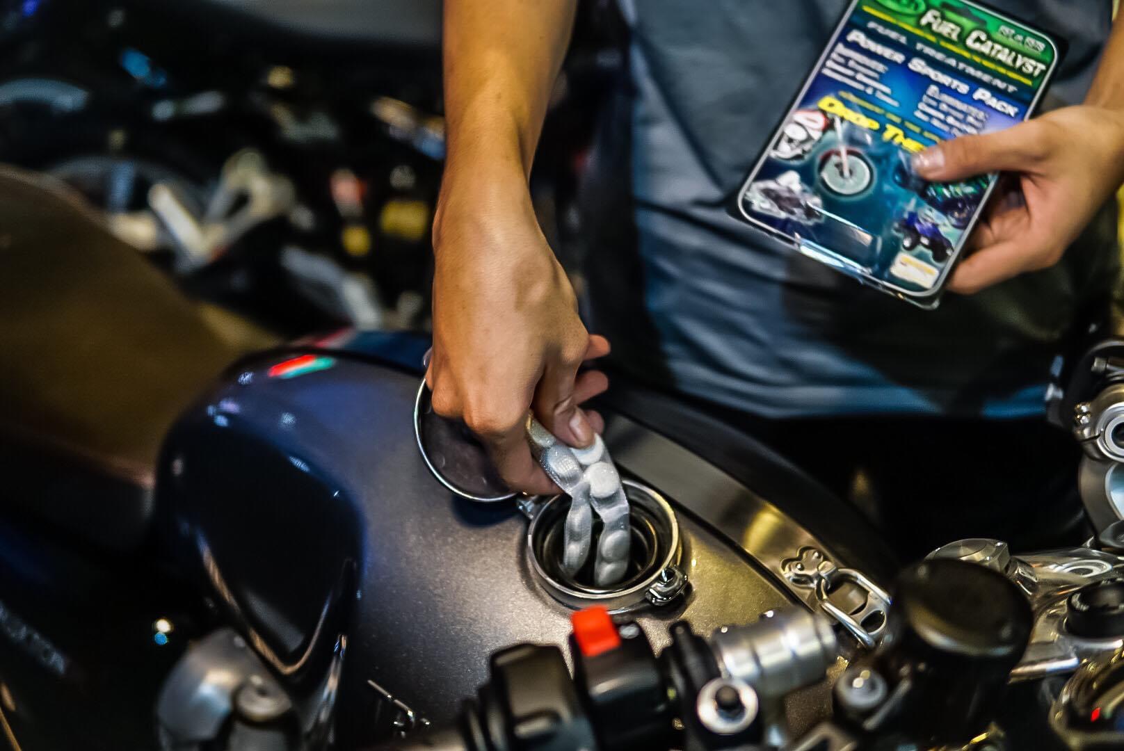- Đối với xe có động cơ từ 300cc trở lên: dùng 2 tép (8 viên) cho trực tiếp vào bình xăng (giá: 1tr500)