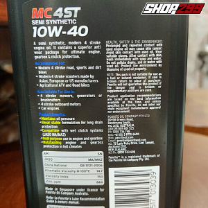 MC-4ST SEMI SYNTHETIC 10W-40 is a premium semi synthetic, SAE 10W-40, non-friction modified, modern, 4 stroke engine oil. It contains a superior anti wear package for ultimate engine, gearbox & clutch protection. MC-4ST SEMI SYNTHETIC 10W-40 meets the performance requirements of API SN and JASO MA/MA2.