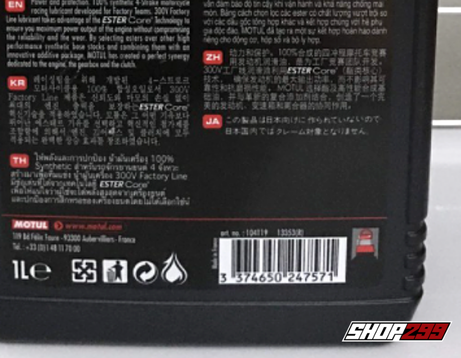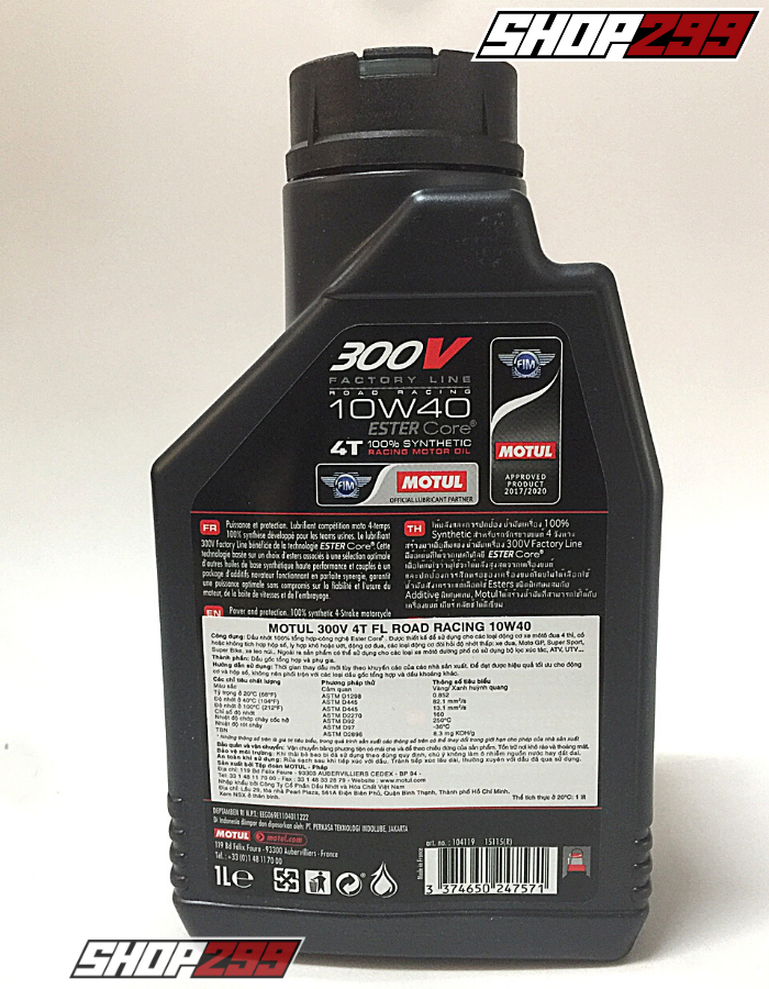 MOTUL 300V FACTORY LINE 10W40 tem 1 lớp được biết đến là sản phẩm nhớt chính hãng chất lượng của tập đoàn dầu nhớt Motul và đánh dấu sự vươn tầm vượt trội của hãng đối với thị trường nhớt xe máy. MOTUL 300V 10W40 tem 1 lớp được tập đoàn nhớt Motul thiết kế đặc biệt cho các loại xe mô tô phân khối lớn, xe đua và xe thể thao, dựa trên sự hợp tác và nghiên cứu kĩ thuật cùng với các đội đua xe mô tô danh tiếng hàng đầu trên thế giới.