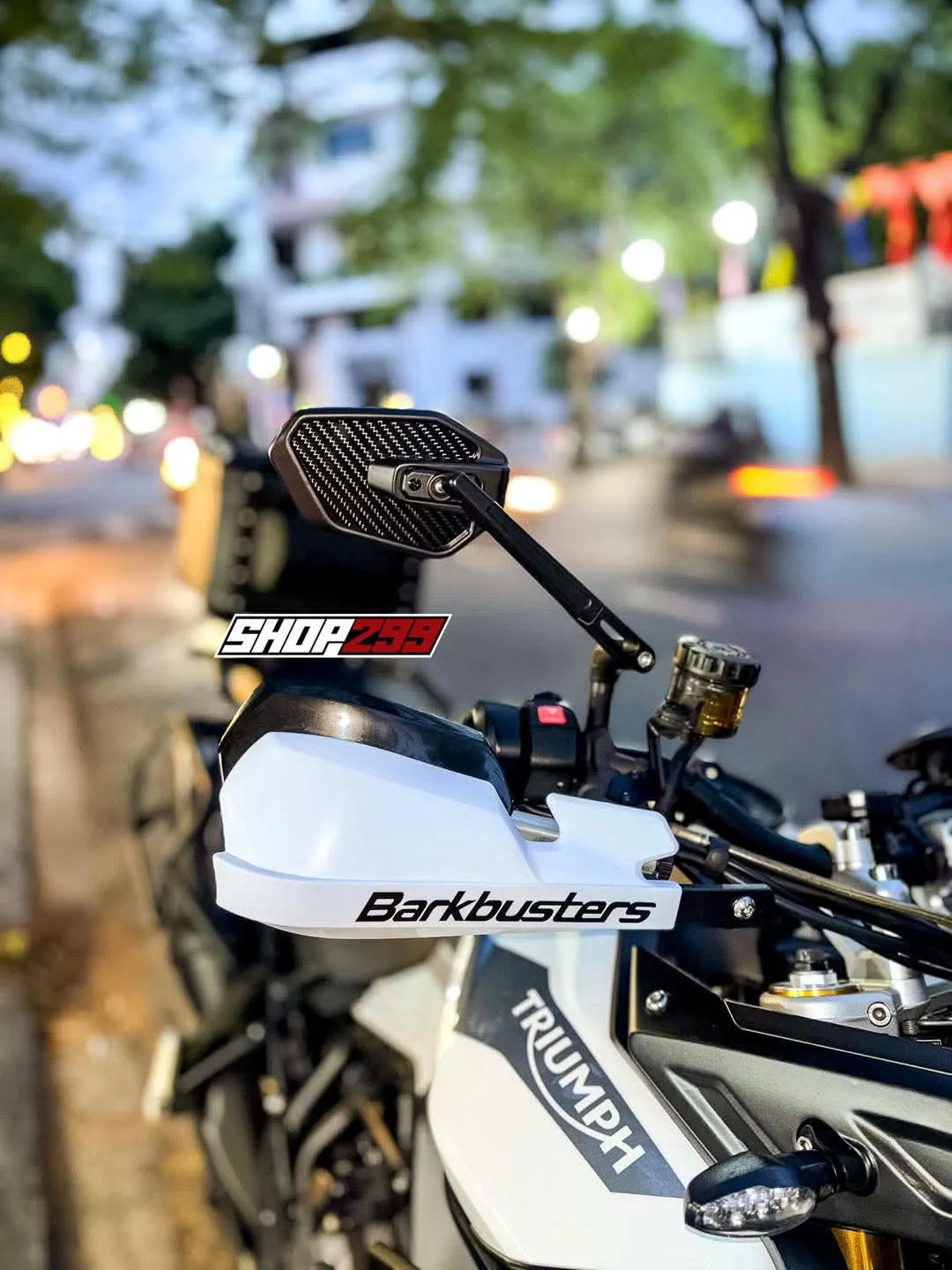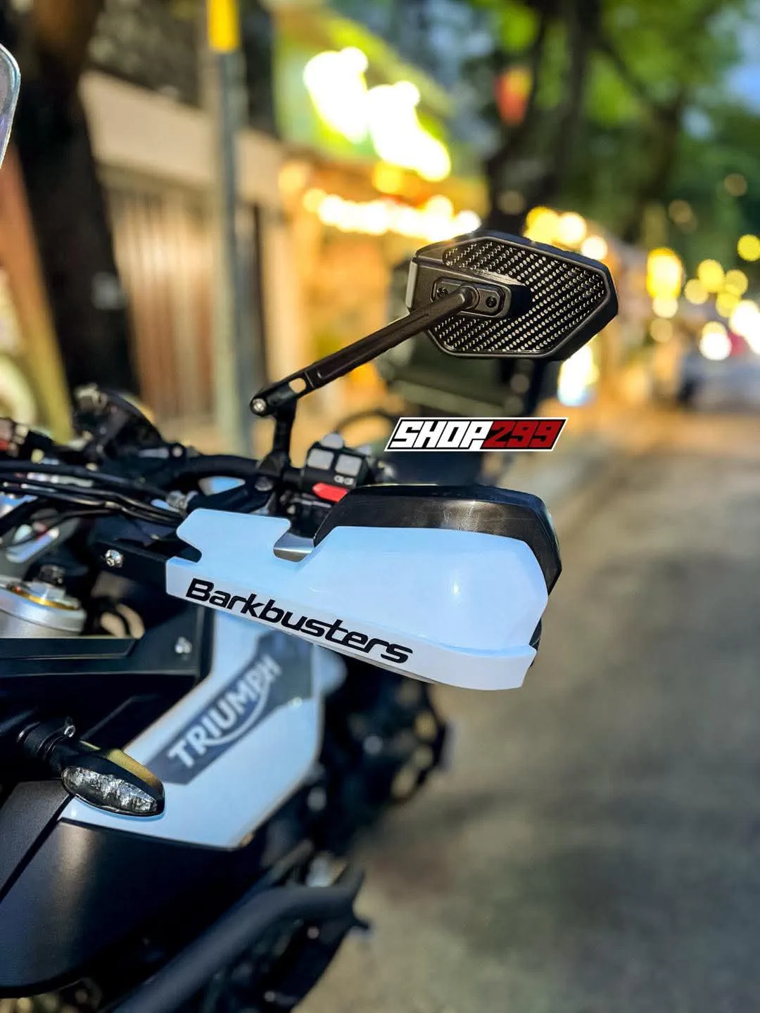 - Bảo vệ tay lái kiểu Barkbusters có thiết kế và chất lượng vượt trội so với các sản phẩm khác trong cùng tầm giá trên thị trường. Vì vậy, với các ưu điểm về phong cách, sức mạnh, độ bền và dễ lắp đặt được đưa vào thiết kế của sản phẩm.