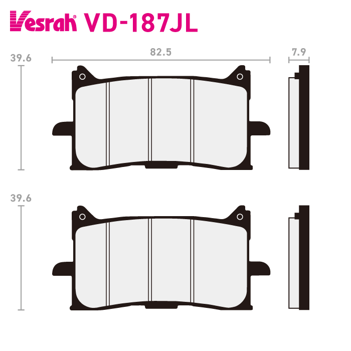 - Vesrah có 2 dòng sản phẩm chủ lực VD Series Semi-metallic (bán kim loại) và JL Series Sintered metal (kim loại tổng hợp).