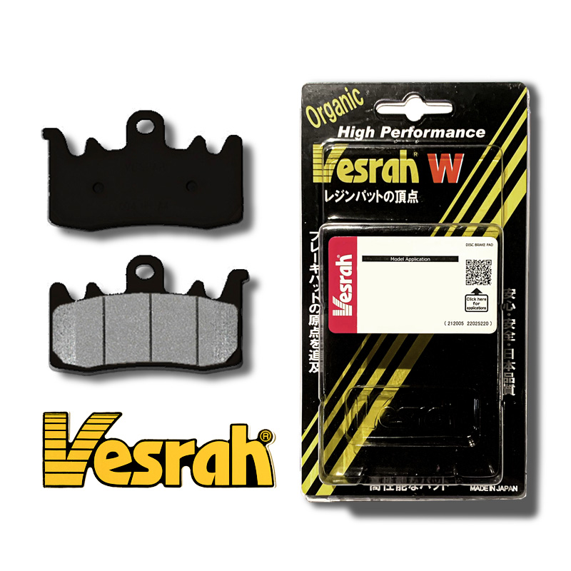 - Vesrah có 2 dòng sản phẩm chủ lực VD Series Semi-metallic (bán kim loại) và JL Series Sintered metal (kim loại tổng hợp).