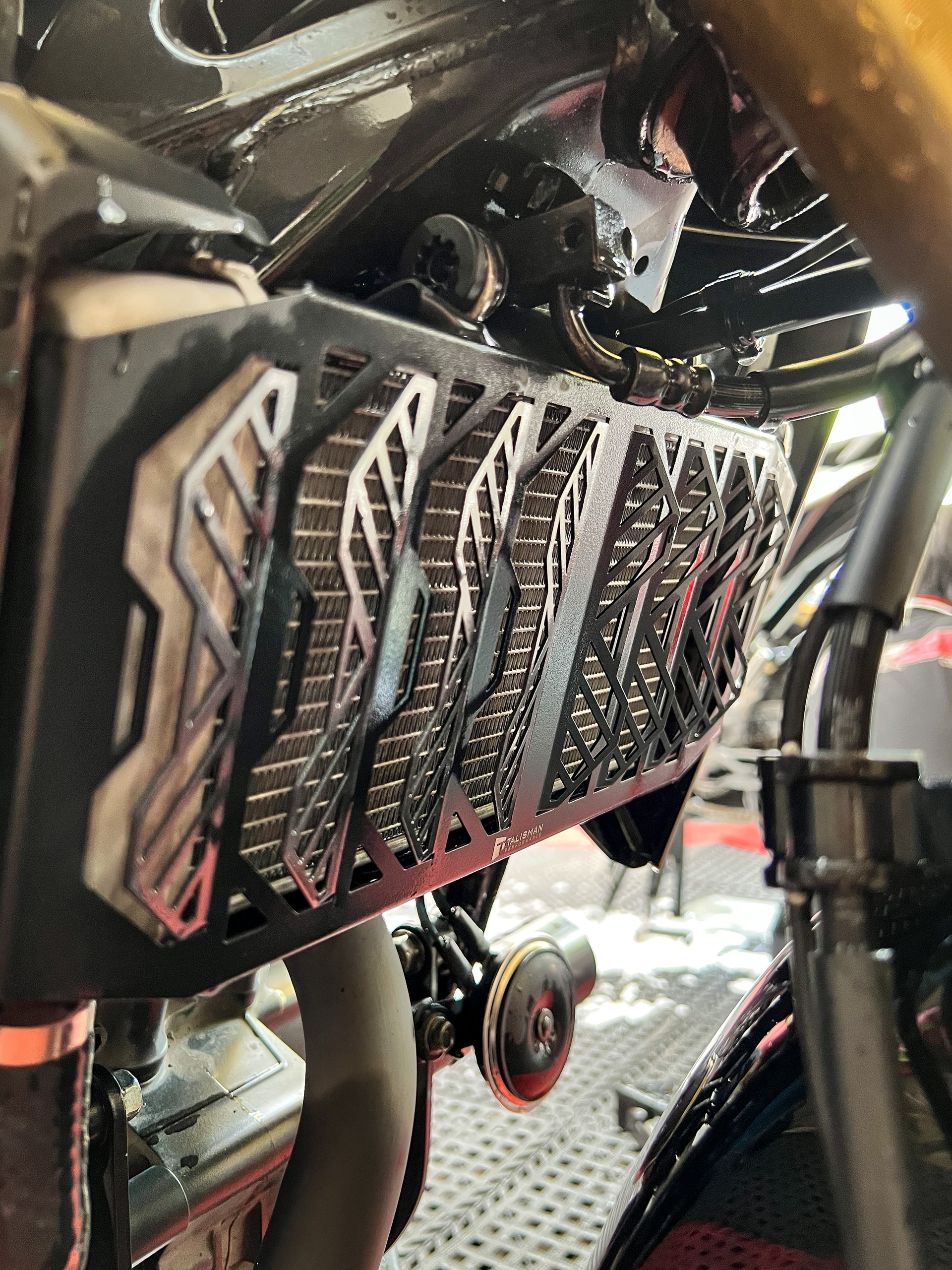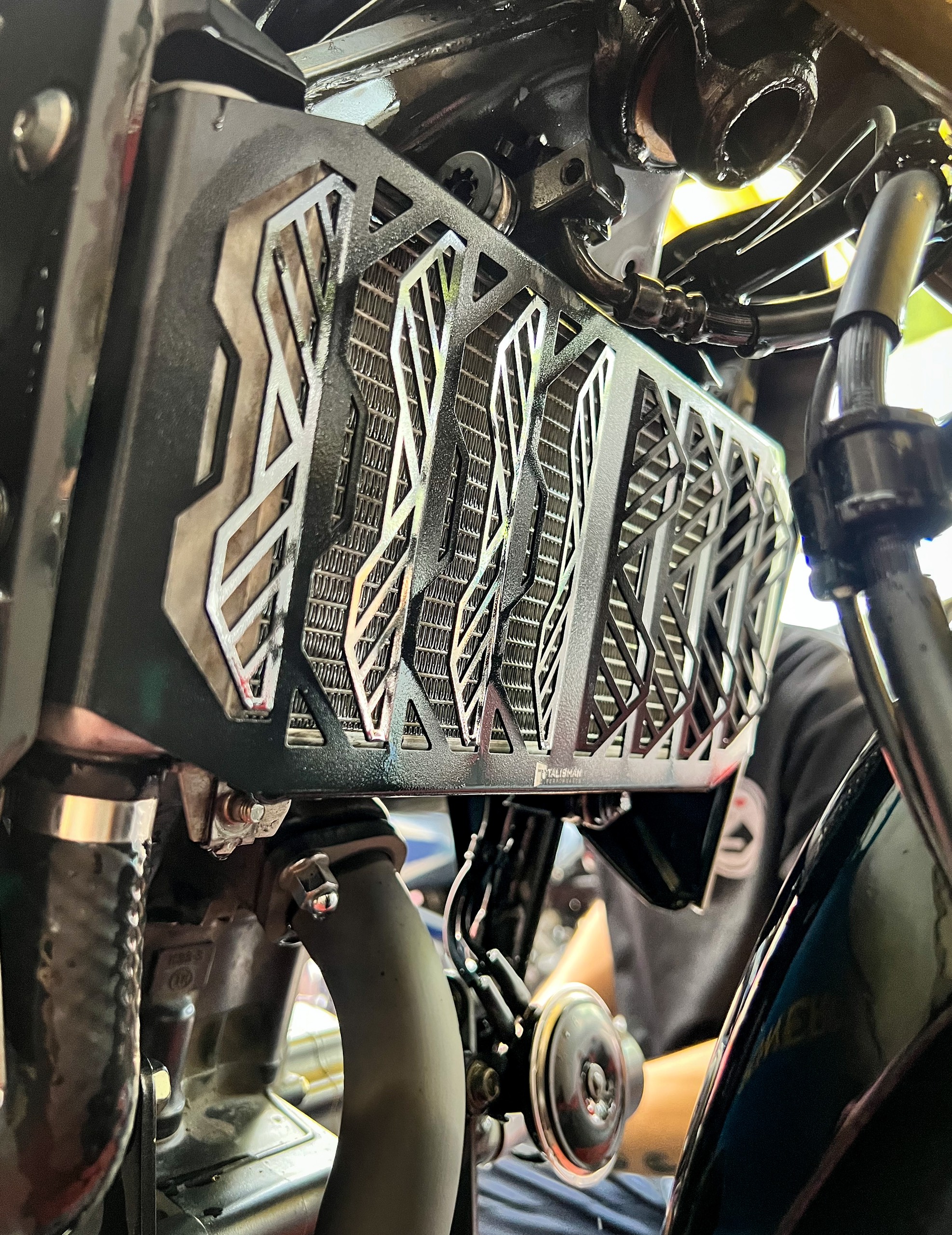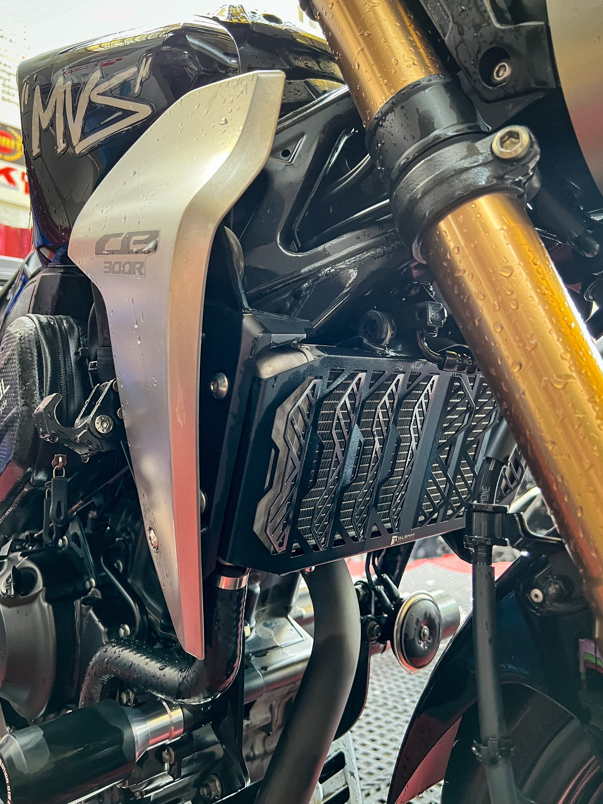 Che két nước Talisman Performance cho Honda CB300R có thiết kế thu gió tối đa giúp làm mát và ổn định nhiệt độ động cơ tốt hơn loại lưới thông thường. Che két nước Talisman được làm riêng cho dòng xe CB300R giúp việc lắp đặt dễ dàng, vừa vặn và không có tình trạng rung lắc phát ra tiếng kêu gây khó chịu. Bên cạnh đó, với nhiều sự cải tiến, che két nước Talisman không những bảo vệ hiệu quả tránh đất đá bắn vào gây móp, hư hỏng két nước mà còn hạn chế bùn sình, nước bẩn từ bánh xe trước bắn trực tiếp vào làm bẩn các lá nhôm. Qua đó thể hiện sự tối ưu trong thiết kế nhằm mang lại hiệu năng tốt nhất cho xe CB300R.