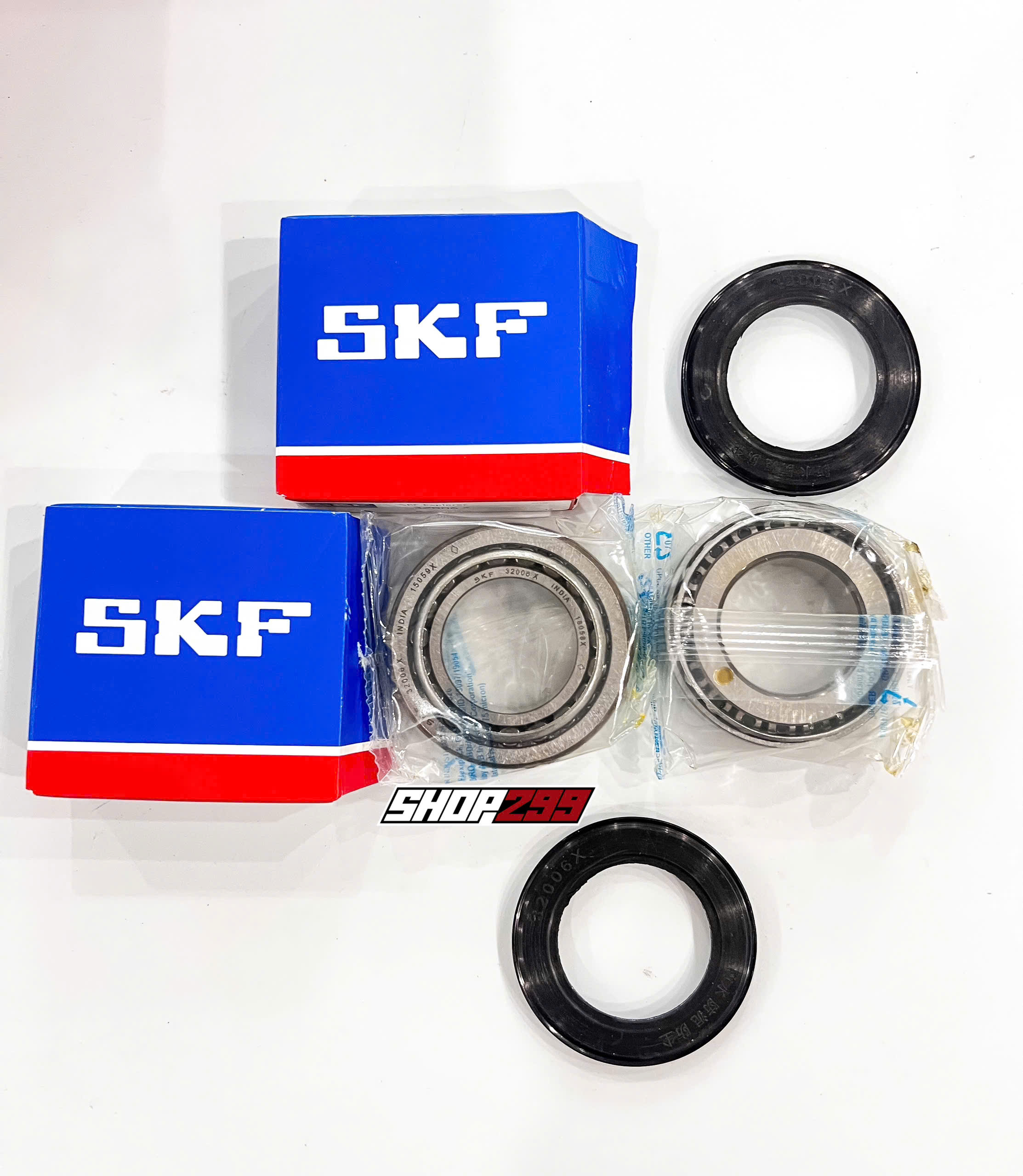 Giá sản phẩm bao gồm 1 bộ chén cổ bi đũa chính hãng SKF trên và dưới đi kèm các phốt bụi.