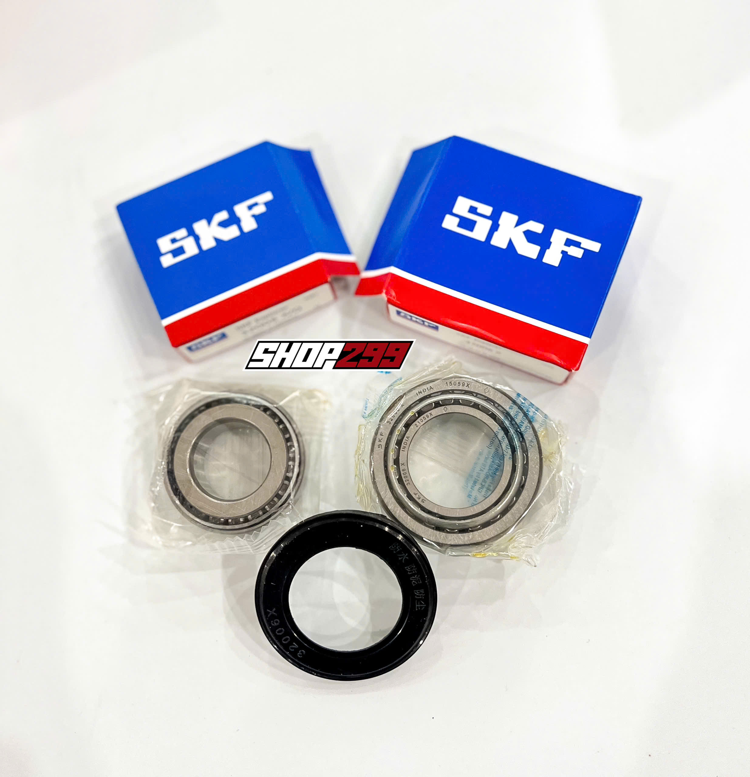 Giá sản phẩm bao gồm 1 bộ chén cổ bi đũa chính hãng SKF trên và dưới đi kèm các phốt bụi.