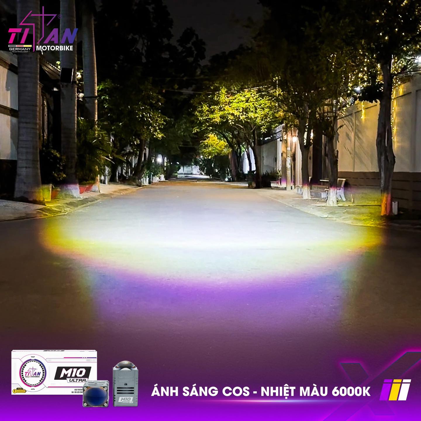 Còn phần lens của Titan Moto M10 Ultra V2 được thiết kế độc đáo với dạng hình Elip, mang đến một phong cách lens mới giúp tối ưu hiệu quả chiếu sáng. Mặt lens của M10 Ultra V2 còn được phủ lớp AR cao cấp, giúp cải thiện đáng kể chất lượng ánh sáng, tăng khả năng bám đường và hạn chế tình trạng lóa mắt cho phương tiện đối diện.