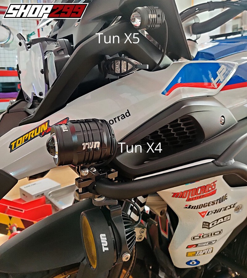 LED TUN X4 có công suất 50W và độ sáng 5000lm, phù hợp để chiếu sáng cả đi phố và đường trường hoặc thay thế đèn chiếu sáng chính của xe. Ưu điểm của TUN X4 là khi anh em đang đi ở tốc độ cao và gặp phương tiện đối diện, anh em chỉ cần chuyển về chế độ cos là vẫn đảm bảo ánh sáng để duy trì tốc độ thay vì tắt hẳn đèn trợ sáng khiến xe rơi vào tình trạng thiếu sáng cục bộ gây nguy hiểm. Vỏ bọc đèn được thiết kế bo tròn cạnh và CNC tạo các họa tiết dạng rãnh vừa giúp tản nhiệt tốt hơn vừa giúp tăng tính thẩm mỹ.