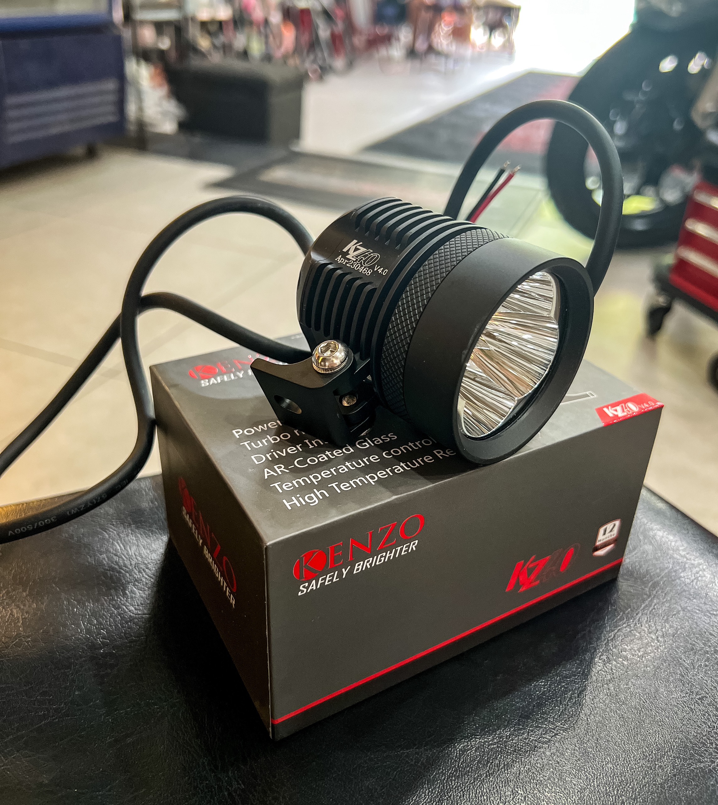 Kenzo KZ40 thế hệ mới nhất V4.0 được nâng cấp hàng loạt công nghệ như vỏ tản nhiệt CNC nguyên khối, chip LED cùng mạch driver kiểm soát nhiệt thông minh, đặc biệt với chế độ Turbo có thể tăng công suất lên 60W thì KZ40 V4.0 không có đối thủ trong phân khúc trợ sáng Spot Beam.