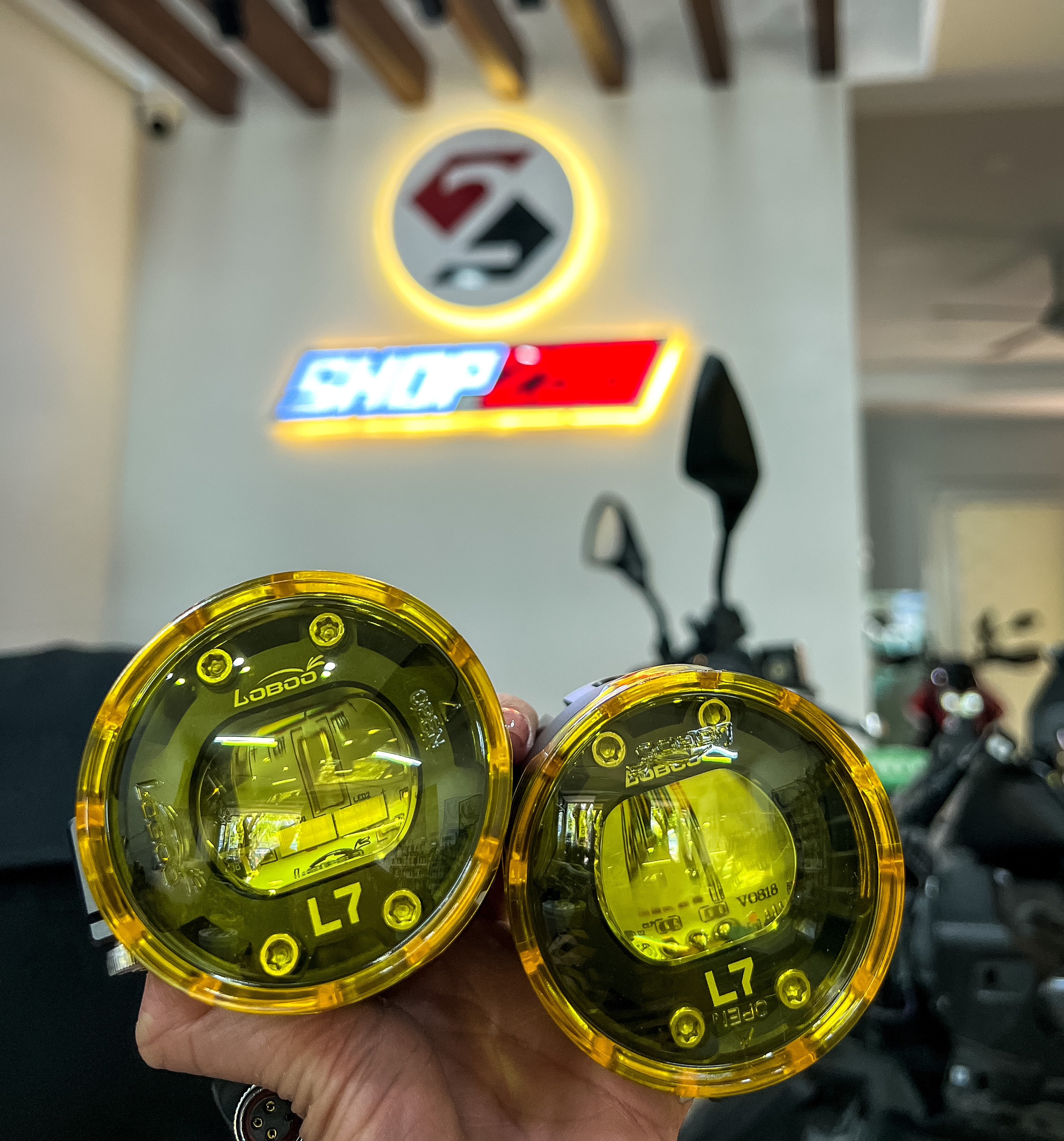 - Trong hộp đèn trợ sáng L7 của Loboo đã bao gồm tất cả các phụ kiện cần thiết như pat bắt đèn, mạch chớp chế độ, công tắc, lens vàng vì vậy khi mua đèn trợ sáng Loboo L7, anh em không cần phải mua thêm bất cứ phụ kiện phát sinh nào, rất tiện lợi và tiết kiệm so với các dòng đèn khác.