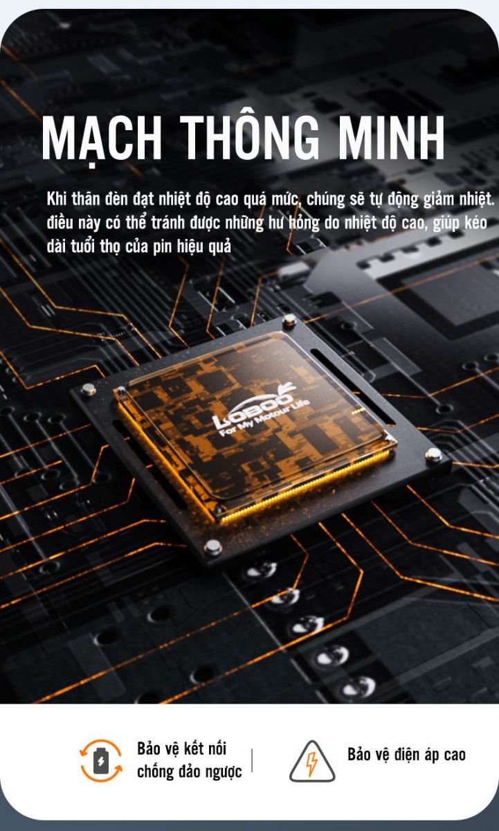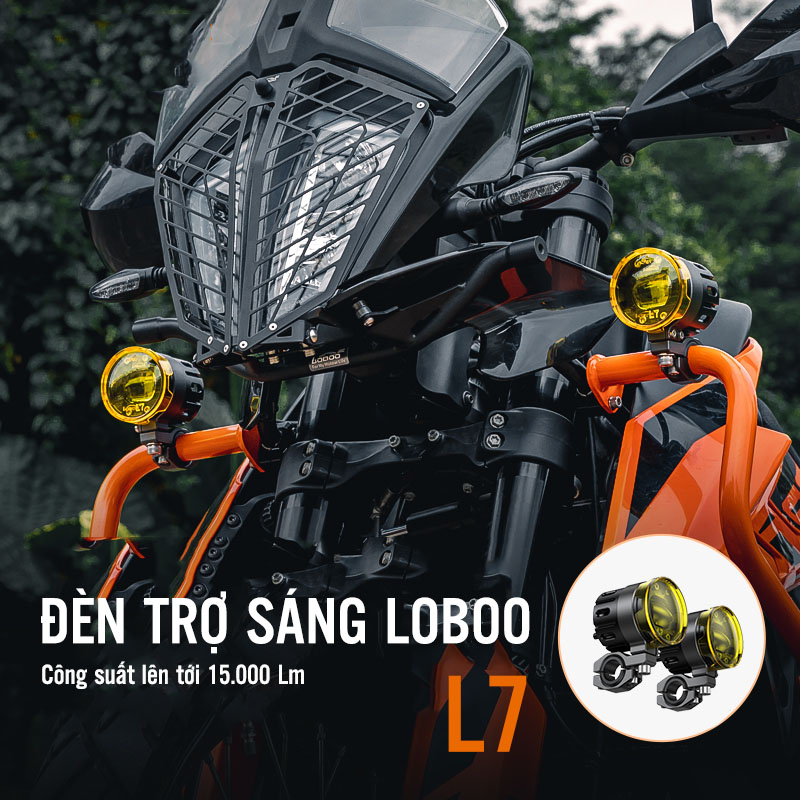 - Đèn trợ sáng Loboo L7 có khung làm bằng hợp kim nhôm 7075 CNC tinh xảo và chi tiết, chống nước tiêu chuẩn IP68 đáp ứng hoàn hảo trong hầu hết mọi môi trường thời tiết. Loboo L7 cấu thành bới các linh kiện điện tử chất lượng cao có khả năng kiểm soát nhiệt độ thông minh tránh hiện tượng hư hỏng do quá nhiệt giúp độ bền của đèn vượt trội hơn so với các thương hiệu khác trên thị trường. Trợ sáng Loboo L7 còn được trang bị giắc chống thấm nước có thể tháo rời và bộ công tắc tích hợp 2 trong 1 thiết kế thông minh mang lại trải nghiệm tốt hơn cho người dùng. Pat đèn được thiết kế linh hoạt phù hợp nhiều vị trí trên xe với phần khung 22mm - 25mm - 28mm, hỗ trợ điều chỉnh xoay đa chiều mang lại độ thẩm mỹ, tiện lợi cao. Đi kèm cặp đèn là chụp lens vàng cải thiện tầm nhìn khi lái xe trong điều kiện thời tiết mưa và sương mù đồng thời bảo vệ đèn không khỏi đất đá văng làm hỏng. Quan trọng nhất với độ sáng 15000 Lumen sáng gấp 10 lần độ sáng đèn zin, tầm chiếu sáng rộng giúp xử lý tình huống kịp thời nâng cao sự an toàn khi đi đêm.