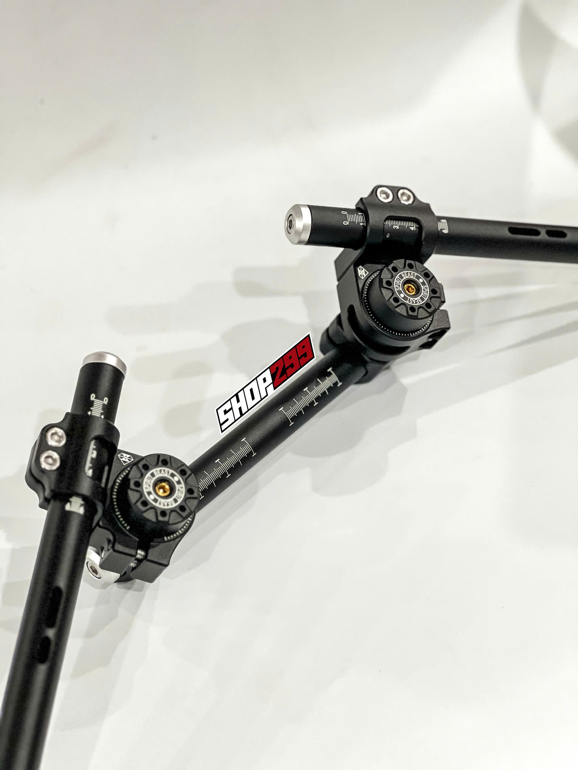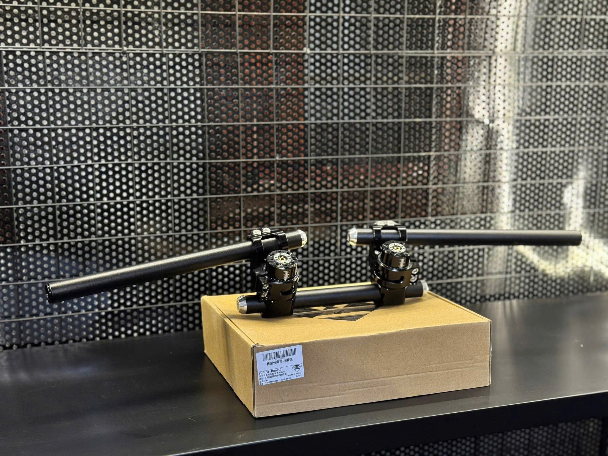 Có thiết kế 3 khúc, cho phép điều chỉnh góc lái tạo tư thế chồm về phía trước, tạo dáng cafe racer đậm chất. Có sẵn vạch để canh chỉnh.