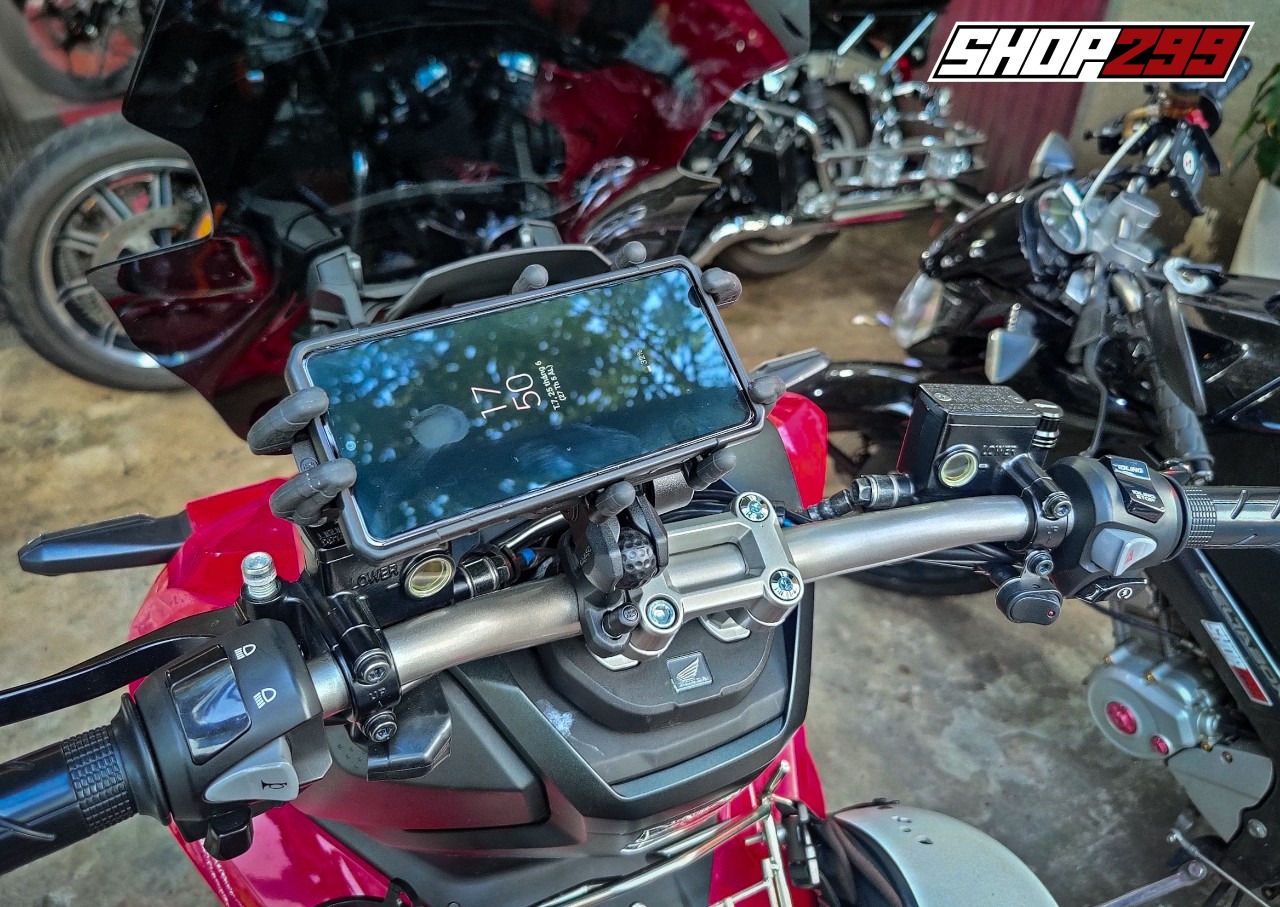 - Chân nhôm kẹp đa năng. Ngoài ra, mẫu giá đỡ này còn nhiều chân bắt khác rất thuận tiện cho anh em, anh em có thể lựa chọn chân bắt ghi đông, chân gương, thanh GPS, ghi đông lớn,....