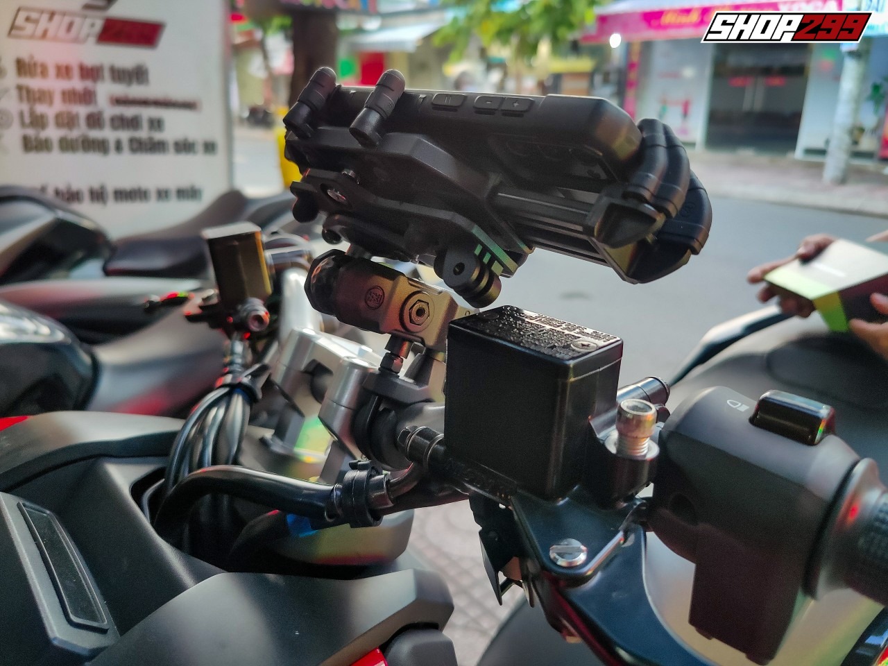 Đây là bộ giá đỡ điện thoại chắc chắn, đặc biệt đi Off-road nặng không sợ rơi rớt, có chống rung, bảo vệ cảm biến camera điện thoại