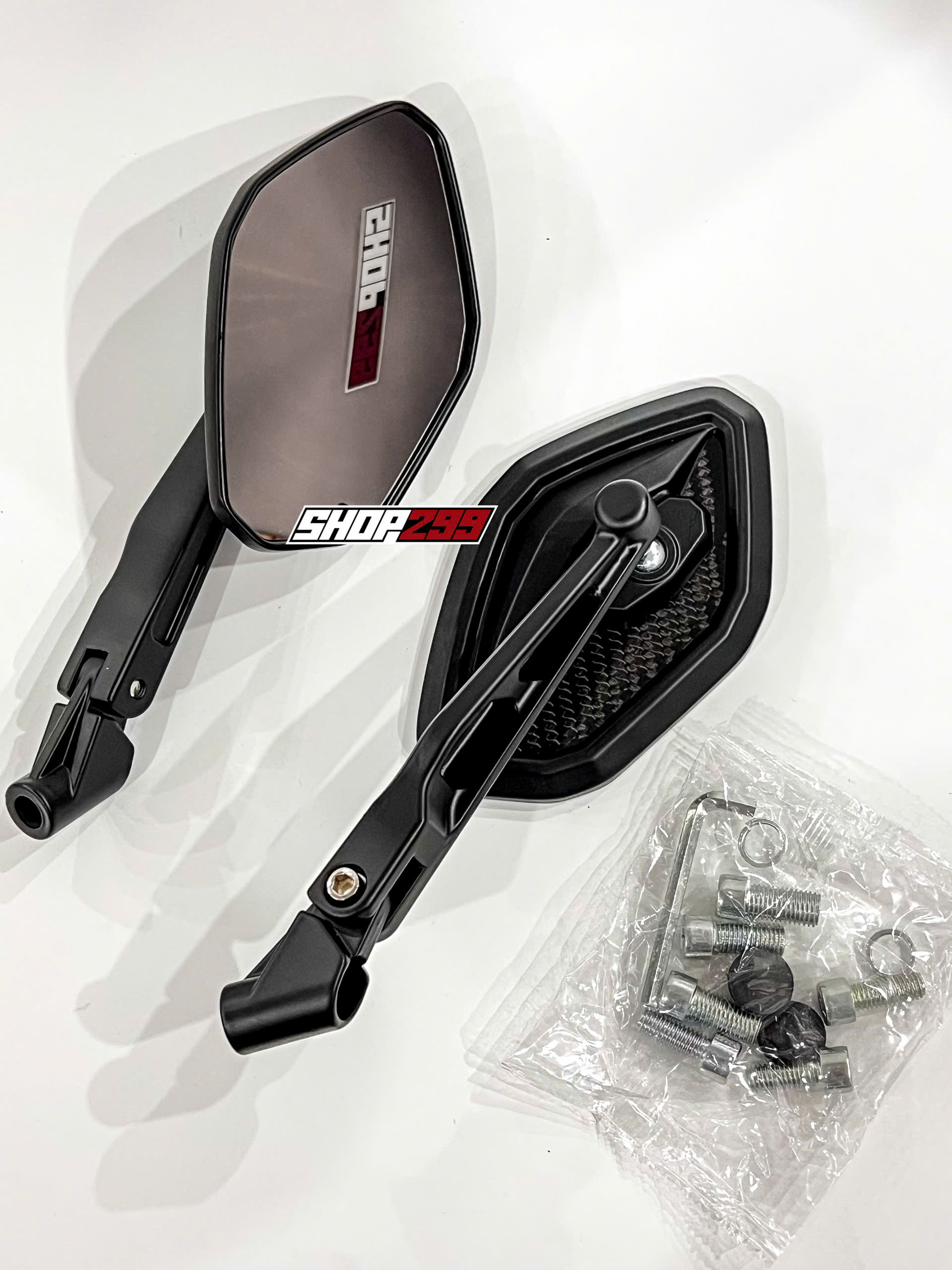Gương chiếu hậu đa giác Spectre với chất liệu nhôm cứng cáp, dày dặn, mặt kính trong, tầm nhìn rõ, dễ điều chỉnh.
