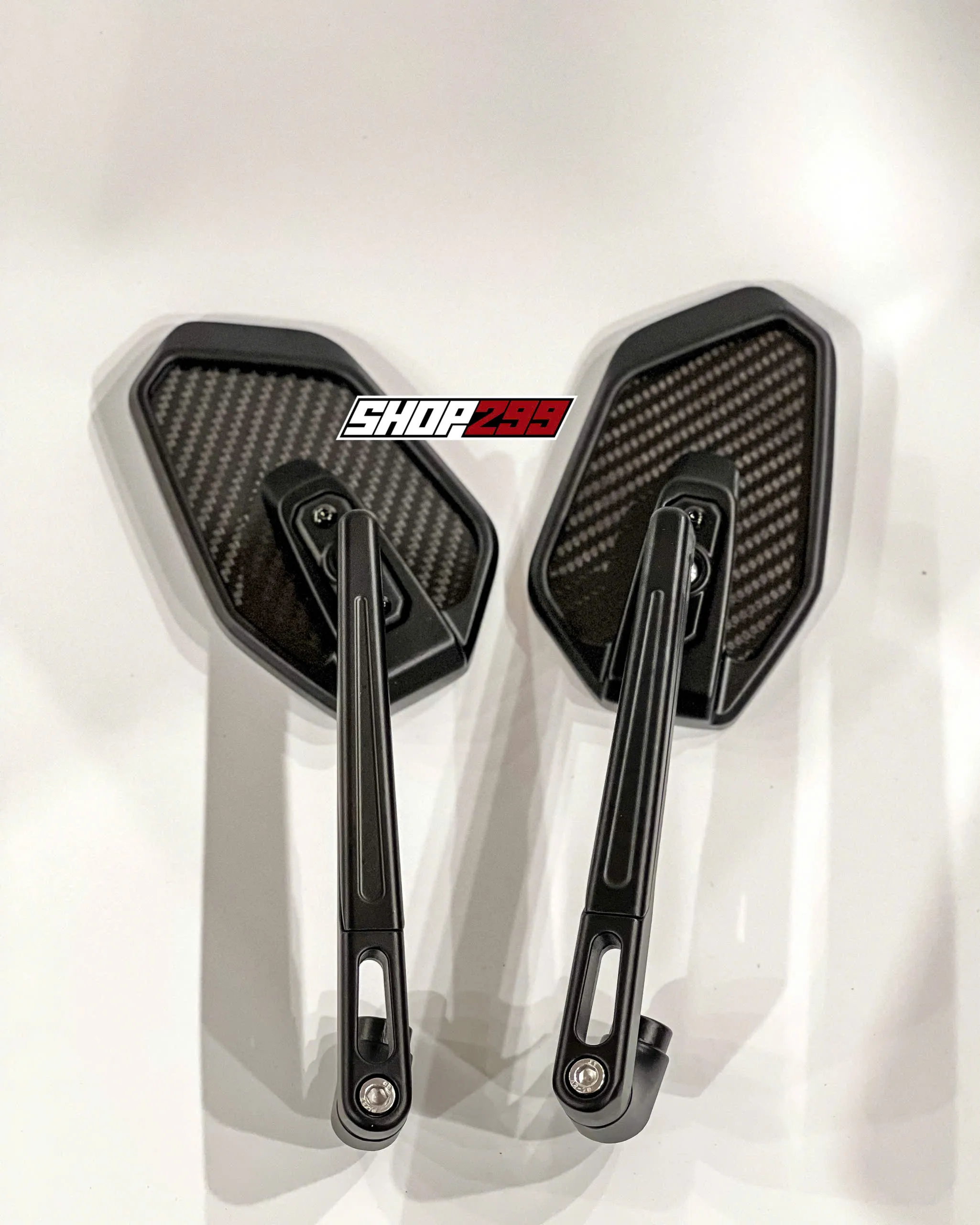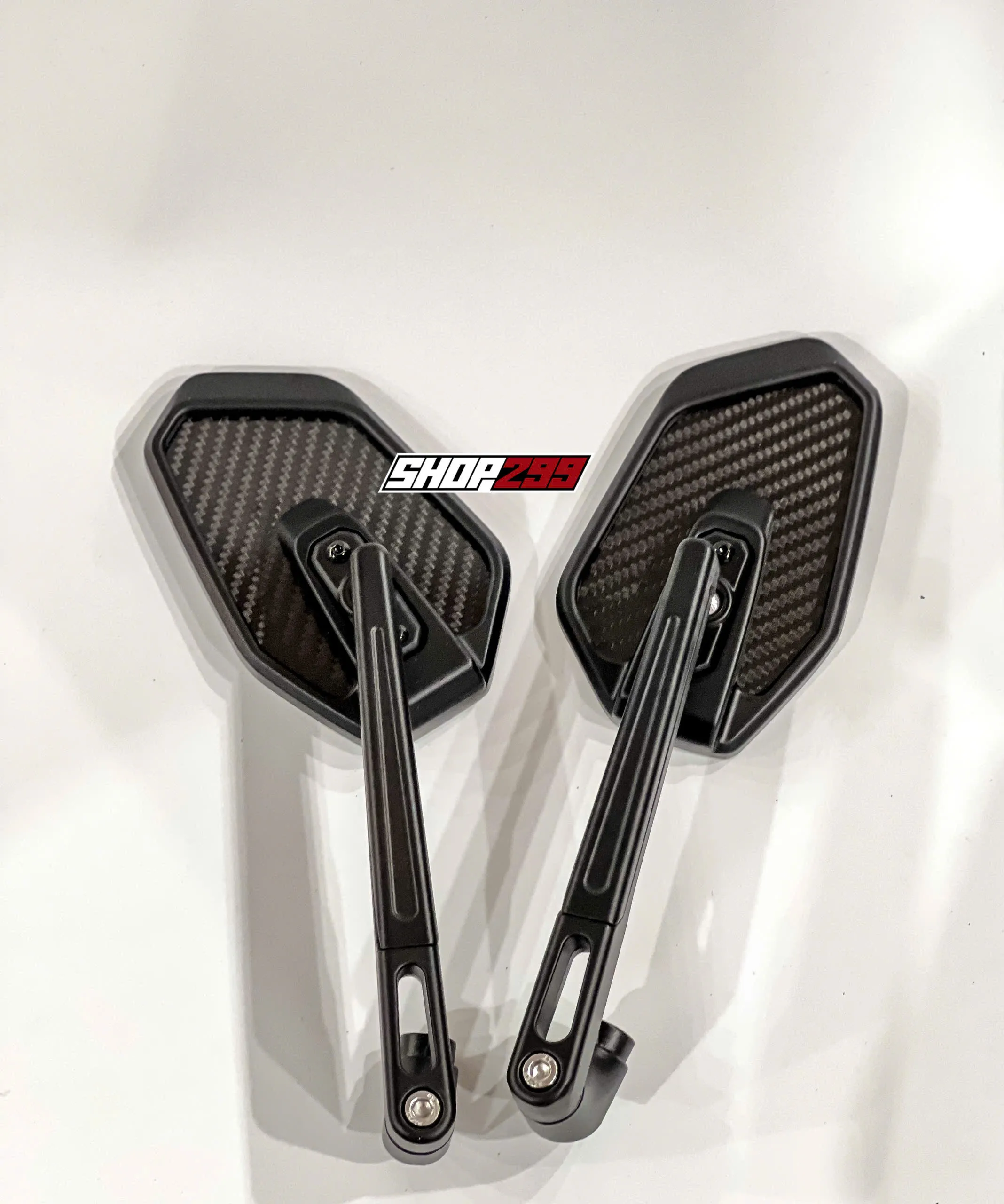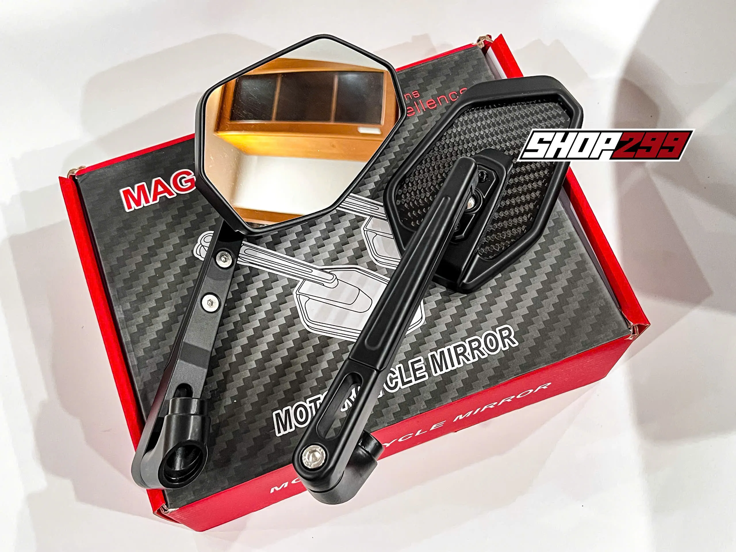 Mẫu gương chiếu hậu đa giác Magazi có chất liệu nhôm, kính có thiết kế phù hợp để lắp vị trí chân kính cho nhiều dòng xe, đặc biệt là xe tay ga như Vespa GTS, Vespa GTV, Vespa LX, Yamaha Grande, Yamaha Janus, Honda SH300i, Honda SH150i, Vinfast Klara, Dat Bike Weaver, Dat Bike Quantum,...và xe classic hiện đại như Yamaha XSR155, CB150R, CB300R, Husky, YB125, Husqvarna,...