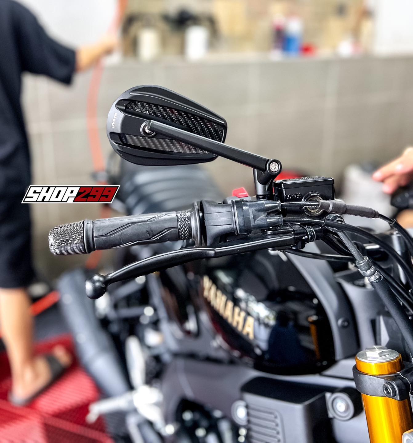 Mặt sau được trang trí họa tiết vân carbon tạo điểm nhấn tinh tế, hiện đại cho kính hậu oval Magazi.