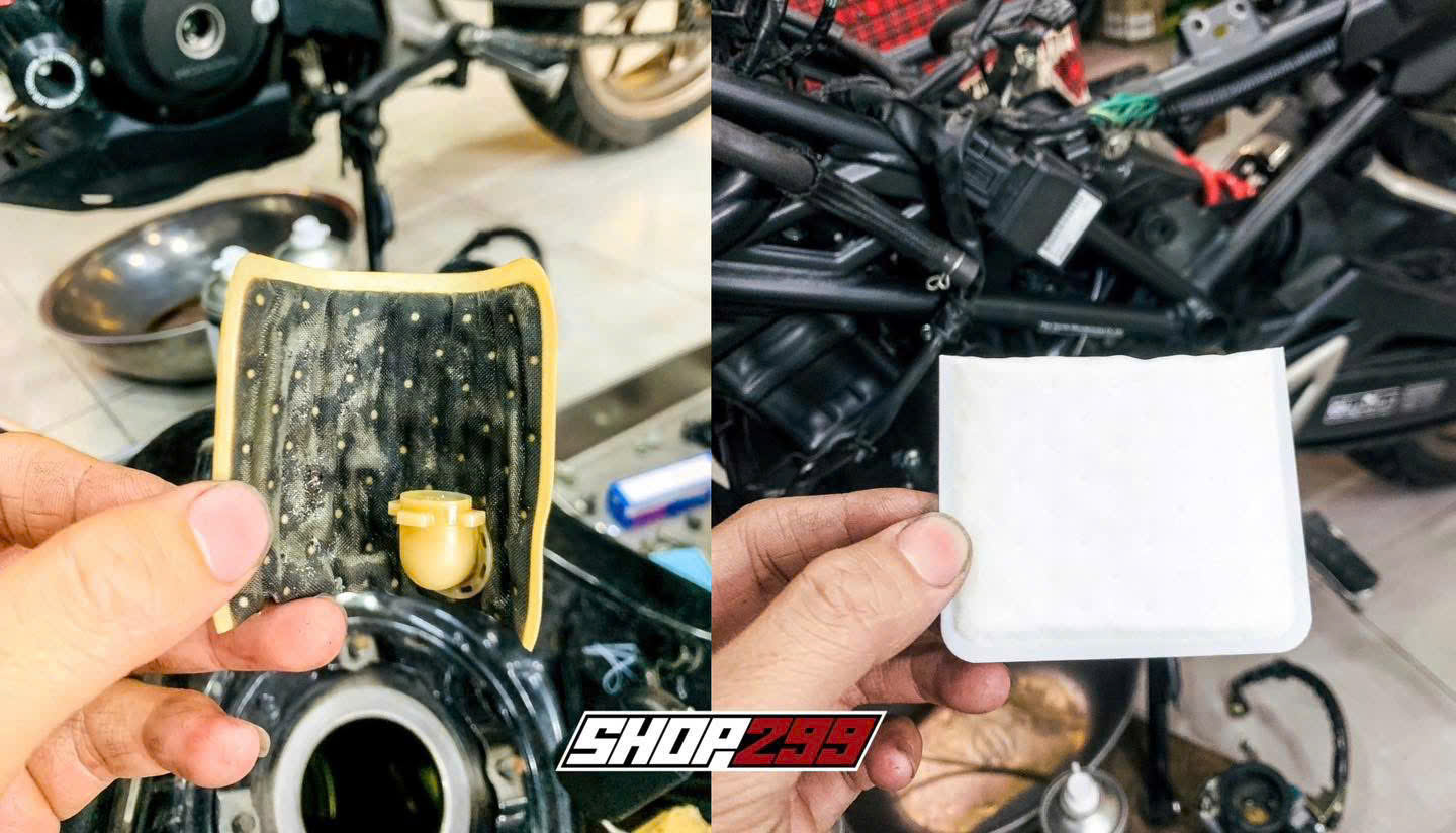 Anh em nên thay lọc xăng mỗi 30.000 km để tránh hiện tượng tắt nghẽn kim phun, hư hỏng bơm xăng cũng như cải thiện độ mượt cho xe. Nguyên nhân chủ yếu do các tạp chất trong xăng bám vào lọc lâu ngày gây ra các hiện tượng trên.