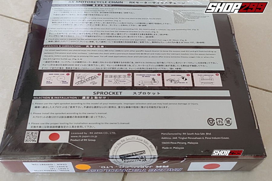 - NSD RK sử dụng bản xích 428HSBT (Xám Standard).