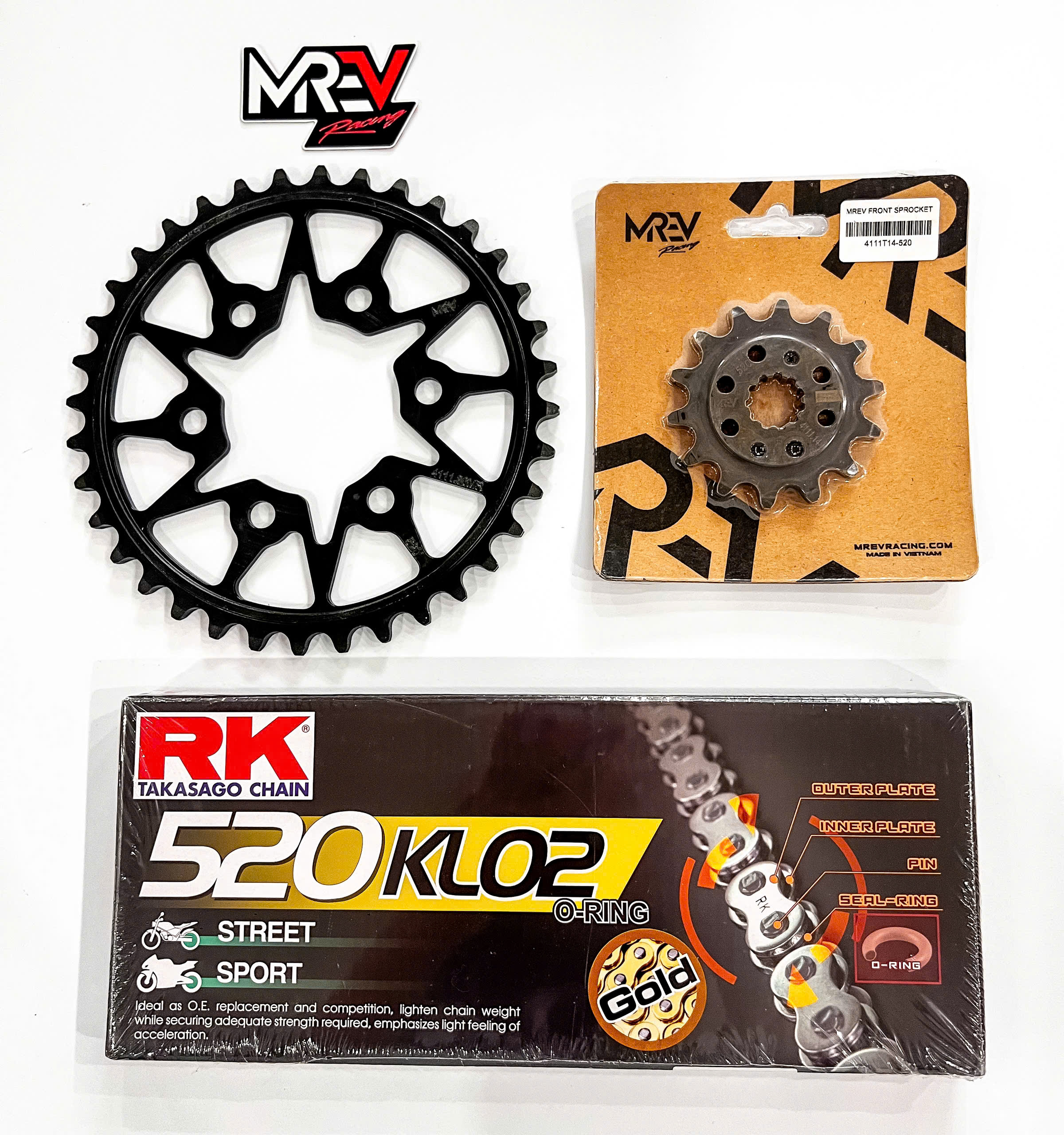COMBO NHÔNG SÊN DĨA MREV CHO HONDA CB300R (NHÔNG DĨA THÉP MREV + SÊN RK 520 KLO2 VÀNG)