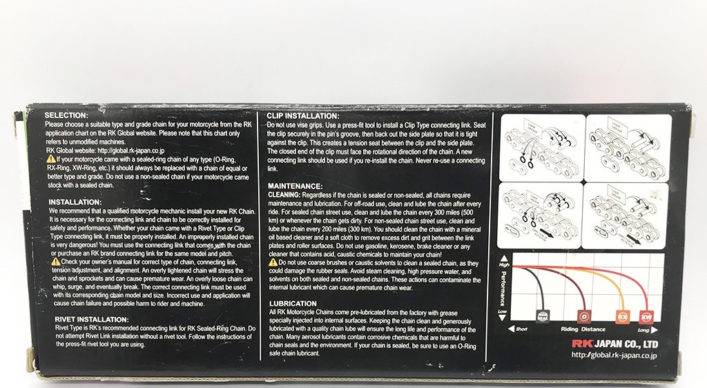 - Siêu nhẹ, rất ít ma sát. Đây là công nghệ phốt cao su tiên tiến nhất của RK dành cho sên xe Phân Khối Lớn nay đã được mang xuống áp dụng cho sên xe Phân Khối Nhỏ.