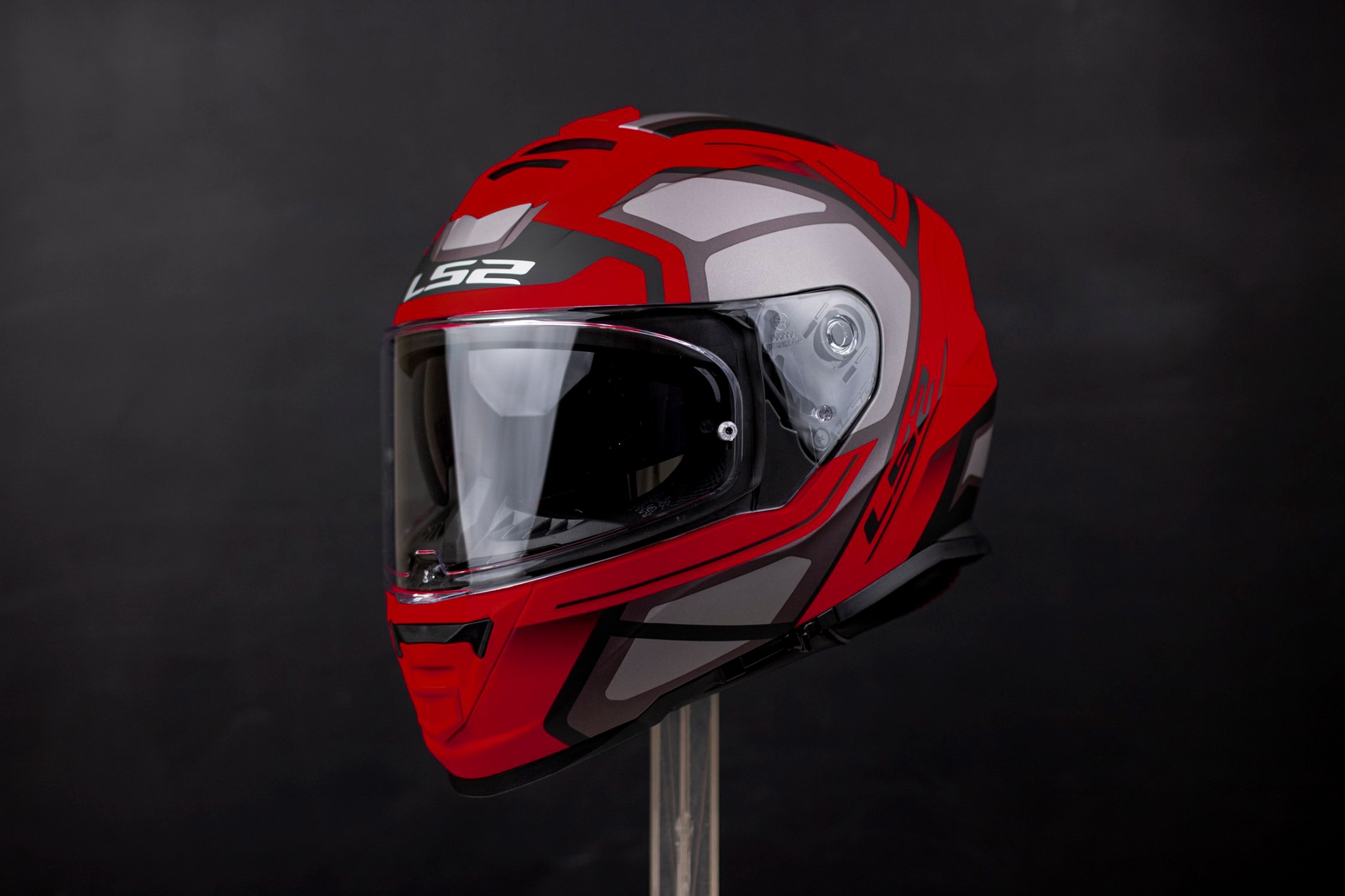 Mũ fullface LS2 FF800 Storm đỏ xám nhám 2 kính có kiểu dáng hiện đại và tinh tế với các đường gân nổi bật 2 bên và trên đỉnh.