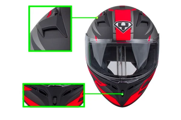 2 khe lấy gió ở phía trước có thể điều chỉnh được và 1 khe thông gió phần đuôi mũ hỗ trợ việc thoát hơi nóng ra phía sau, giúp không khí ra vào được lưu thông. Bên trong có các rãnh để khí luồng ra đảm bảo sự thông thoáng.
