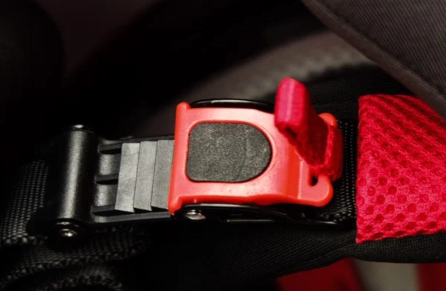 Khóa dạng lẫy bằng kim loại, thao tác dễ dàng khi chỉ cần điều chỉnh các nấc để khóa mũ và kéo phần dây ruy băng đỏ trên khóa để mở.